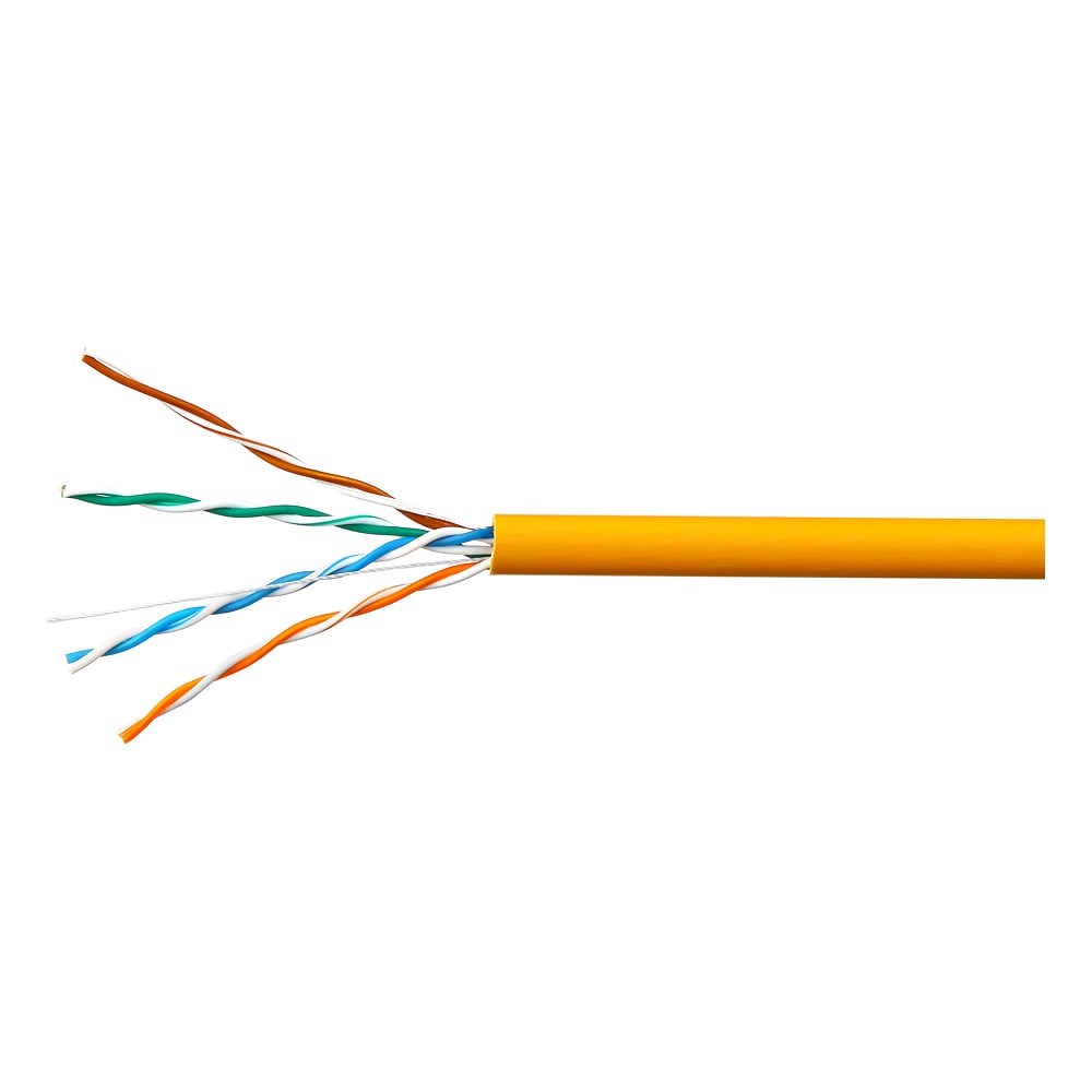 Кабель парной скрутки для структурированных кабельных систем, предназначен для передачи сигналов с частотой до 100 МГц (категории 5e) в сетях по стандарту ИСО/МЭК 11801 при рабочем напряжение до 145 В переменного тока. Предназначен для стационарной прокладки внутри помещений, оснащенных компьютерной и микропроцессорной техникой, а также в зданиях и сооружениях с массовым пребыванием людей. Кабель не распространяет горение при групповой прокладке по категории А. Пониженное дымо- и газообразование при горении и тлении кабеля. Низкая коррозионная активность. Пониженная токсичность продуктов горения кабеля.Элементы конструкции: 1. Токопроводящая жила – однопроволочная, мягкая медная проволока, диаметром 24AWG (0,51мм) 2. Изоляция проводника – полиэтилен 3. Разрывная нить – капрон 4. Внешняя оболочка – из термопластичной безгалогенной композиции.Технические характеристики: – температура эксплуатации от -15°С до +70°С Электрическое сопротивление цепи (двух последовательно соединенных токопроводящих жил рабочей пары) постоянному току при температуре 20°С – не более 18,1 Ом/100м Эксплуатируется на частотах до 100 Мгц Минимальный радиус изгиба – 8 наружных диаметров кабеляДиаметр изоляции одной жилы: 0,94-0,98мм Внешний диаметр кабеля: 5.8 +-0,2мм