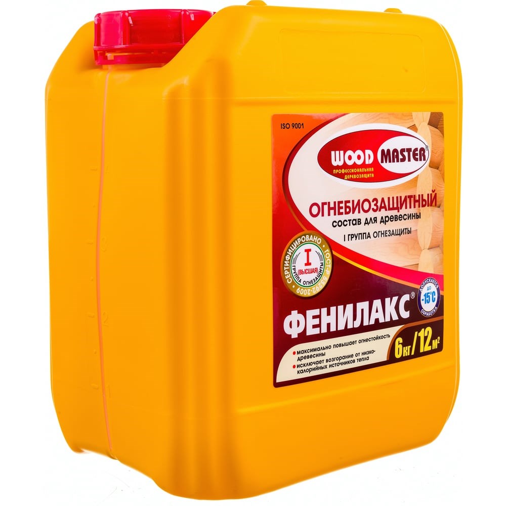 Огнебиозащитный состав для древесины Woodmaster Фенилакс 6 кг 15897 предназначена для защиты древесины (ДВП, ДСП, фанера, MDF, клееный брус и др.) от возгорания. Применяется внутри помещения и снаружи под навесом. В состав краски входит антисептик, который защищает древесину от плесени, гниения и грибка. I-я и II-я гр. огнезащитной эффективности; Срок службы покрытия - до 4 лет; Полное высыхание 24 часа; Без запаха.