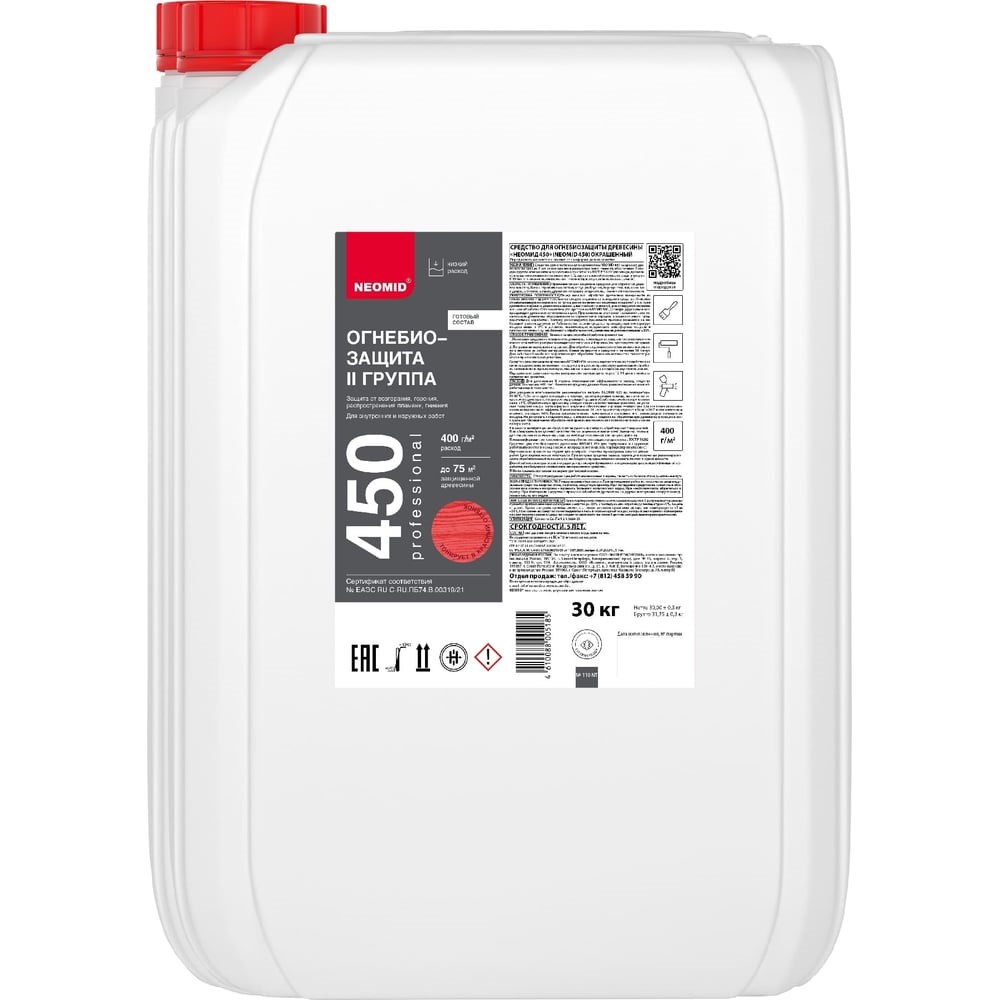 Огнебиозащитный состав NEOMID 450 2 группа 30 кг тонированный Н-450(2-30/тон защищает древесину на срок до 7 лет от возгорания и распространения пламени, обеспечивая II группу огнезащитной эффективности согласно ГОСТ Р 53292 (переводя древесину в трудновоспламеняемый материал), и на срок 8-10 лет от гниения, возникновения плесени, при отсутствии контакта с влагой. Применяется как защитная пропитка для обработки деревянных стен, балок, стропильных систем, несущих брусьев, перекрытий, лаг, оконных и дверных блоков, а также других конструкций из древесины различного назначения. Огнебиозащитная пропитка не оказывает негативного воздействия на свойства древесины, не изменяет ее структуру и цвет, не препятствует дальнейшей обработке, склеиванию и окраске.