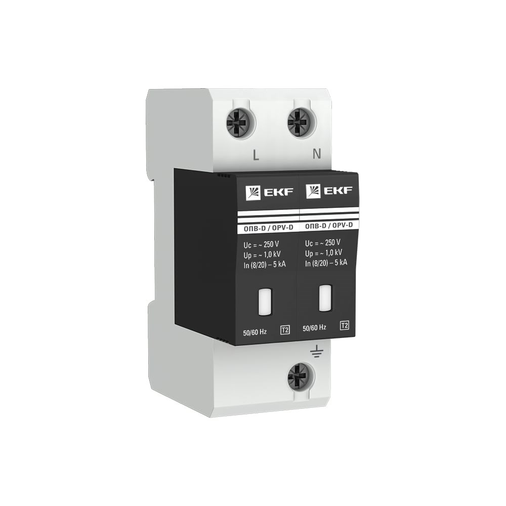 Ограничитель импульсных напряжений EKF серии ОПВ-D/2P In 5кА 230В opv-d2
