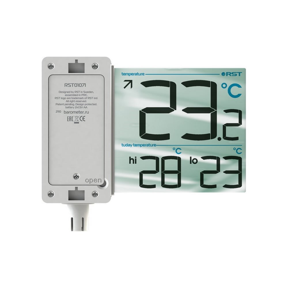 Дневное время LCD-дисплей цифрового термометра пропускает солнечный свет сквозь цифровые элементы, делая их видимыми инверсивно в белом цвете. В ночное время LCD-дисплей отражает комнатный свет и отображает цифровые элементы в черном цвете. Это позволяет в любое время суток четко видеть изображение термометра, который крепится за окном на раму (или стекло) при помощи усиленного встроенного скотча.Диапазон измерения термометра -50...+70 °С. Разрешение 0.1 °С. Интервал измерения 60 с.Для достижения максимально точных показаний термо- ( и гигро- у термогигрометров) сенсоры размещены в хорошо вентилируемом отсеке в нижней части прибора и защищены от в лаги в местах контакта специальным покрытием.Термометр определяет и показывает на дисплее максимальную и минимальную температуры, зарегистрированные за последние 24 часа, тенденцию изменения текущей температуры и при определенных условиях отображает сигнализатор возможного гололеда.