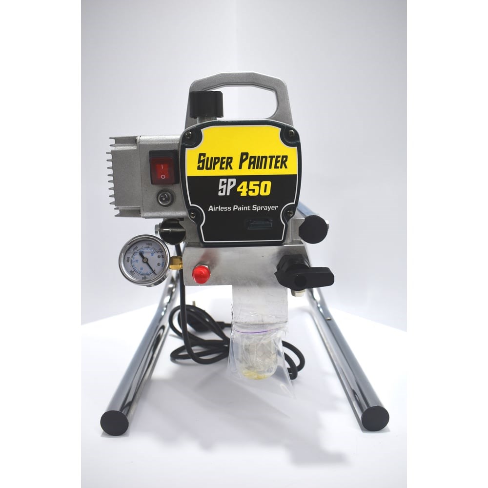 Аппарат SP-450 станет идеальным помощником для профессионального маляра, выполняющего небольшие и средние объемы работ по окраске не слишком густыми лакокрасочными материалами, такими как морилки, лаки, грунтовки, масляные, акриловые и не слишком густые латексные краски, а так же другие материалы аналогичной вязкости без содержания абразивных частиц. Dino Power SP 450 - окрасочный аппарат, предназначенный для безвоздушного распыления краски через краскораспылитель. Окрасочный аппарат используется для покраски на строительных площадках, при ремонте квартир и коттеджей, окраски металлических и деревянных поверхностей. Окрасочный аппарат распыляет краску через краскопульт под высоким давлением, благодаря этому краска распыляется аккуратно, без лишней пыли и тумана. Окрасочный аппарат забирает краску из ведра с помощью заборного шланга с патрубком и фильтром для краски, далее она проходит через поршневой насос высокого давления и подается по шлангу на краскораспылитель для распыления через сопло. Окрасочный аппарат при своих малых габаритах имеет высокую мощность, и способен нагнать давление краски до 200 атм. Производительности окрасочного аппарата достаточно для стабильной покраски со стандартными красками из строительного магазина.