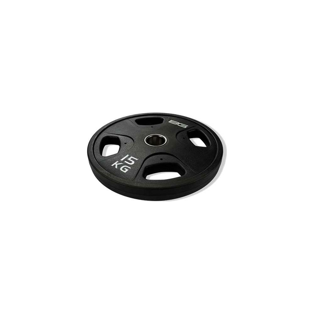 Олимпийский диск Bronze gym полиуретан, 15 кг BGPLP150 изготовлен из чугуна. Данный материал выдерживает регулярное использование оборудования в спортивных учреждениях с большим количеством клиентов, а также увеличивает срок службы изделия. Диски покрыты полиуретановой оболочкой для предотвращения скольжения во время использования и защиты напольного покрытия. Каждая модель диска имеет четыре отверстия для надежной фиксации и выполнения упражнений без штанги. Втулка диска имеет диаметр 51 мм, что подходит для любой олимпийской штанги. Модельный ряд выполнен в черном цвете и оснащен маркировкой в килограммах для облегчения идентификации.