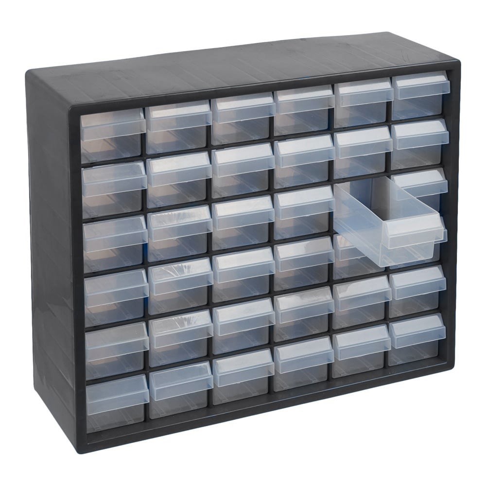 Органайзер с выдвижными ящиками АВТОЭЛЕКТРИКА ASM 36 -390 4000 подходит для хранения крепежа, швейных принадлежностей, рыболовных снастей и прочих мелких деталей. Имеет 36 выдвижных отделений для оптимальной организации рабочего пространства. Данная модель изготовлена из пластика и имеет малый вес. Органайзер удобно размещать на столе или верстаке. Размеры лотков: 12х6х4.5 см Внимание! Цвет органайзера может отличаться от представленного на фото в зависимости от поставки.