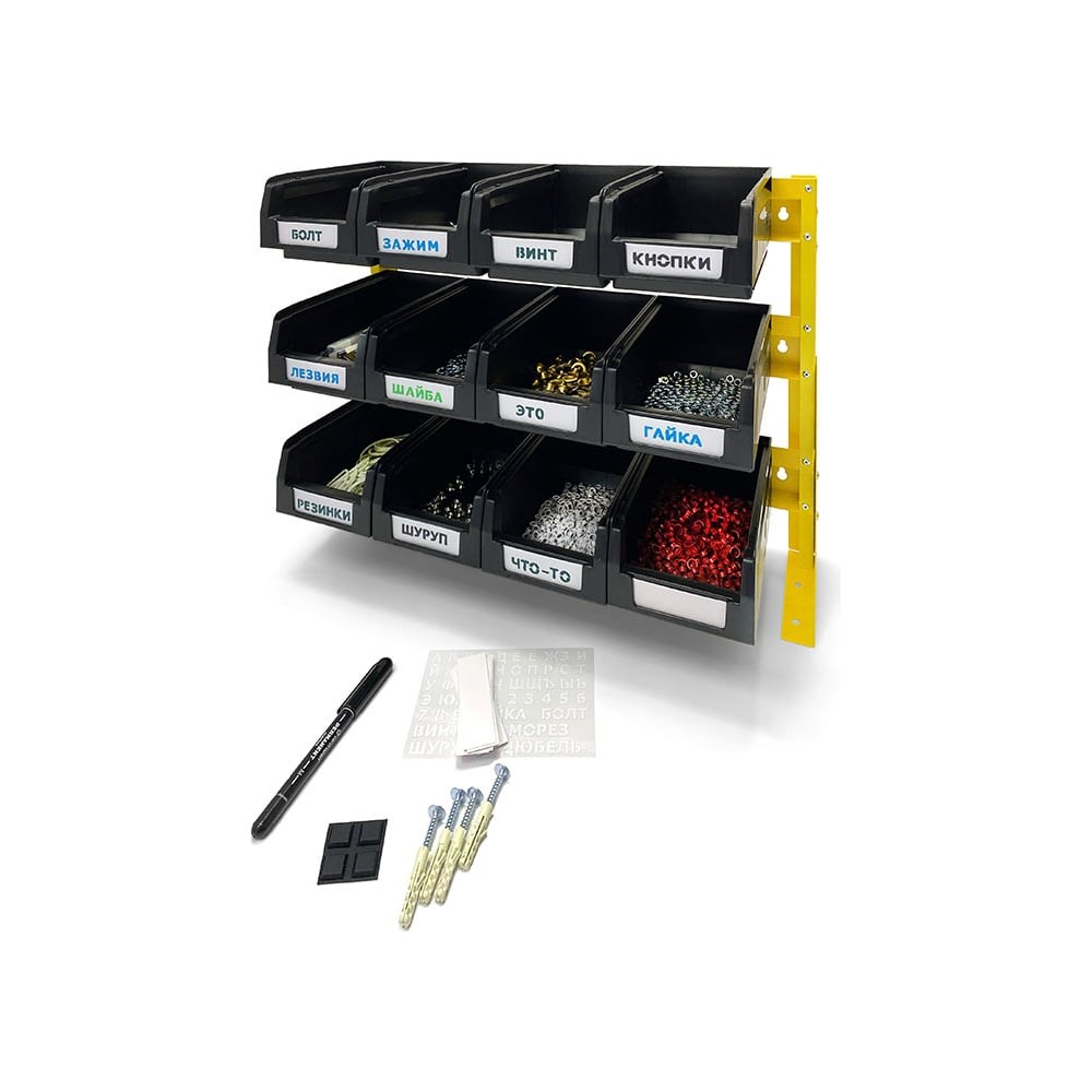 Органайзер для мелочей ООО ММПО 1-3x4 4673736779074 - это незаменимый помощник в организации рабочего пространства мастерской и сборочного цеха. Представляет собой односторонний органайзер для адресного хранения мелочей и крепежа. Рассчитан на 12 мест хранения в лотках размером 165х100х75 мм. Данная моедль имеет соответствующие зацепы для лотков и уклон, чтобы лотки не "клевали" под нагрузкой. В основании опор имеются отверстия для жесткого крепления к поверхности, а также резиновые опоры для защиты поверхностей от царапин. В спинке органайзер имеет отверстия для крепления на стену, укомплектован стеновым крепежом. Для повышения устойчивости опоры можно увеличить. Достаточно их отсоединить от каркаса, открутив 2 винта, и присоединить к каркасу короткой стороной. Левая опора станет правой, а правая левой. Данная модель укомплектована лотками, адресными бирками, маркером и трафаретом для комфортной организации рабочего места.