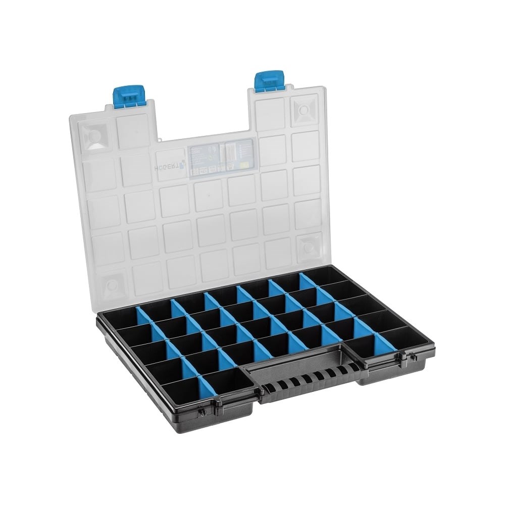 HOEGERT TECHNIK HT7G026: Органайзер 16 – Порядок и организация для профессионалов! Органайзер HOEGERT TECHNIK HT7G026 – это универсальное решение для хранения мелких предметов, обеспечивающее порядок и удобный доступ к необходимым деталям. Регулируемые перегородки позволяют адаптировать внутреннее пространство органайзера под ваши индивидуальные потребности.Преимущества органайзера HOEGERT TECHNIK:Прочность и долговечность: Изготовлен из высококачественного полипропилена, гарантирующего устойчивость к ударам и износу.Надежная защита содержимого: Плотная прозрачная крышка предотвращает перемещение и смешивание мелких предметов во время транспортировки и хранения.Удобная переноска: Оснащен удобной и крепкой ручкой для комфортной транспортировки.Надежная фиксация: Прочные пластиковые защелки обеспечивают надежное закрытие органайзера, предотвращая случайное открытие.Оптимальная организация: Регулируемые перегородки позволяют создать до 32 сегментов, обеспечивая индивидуальную настройку пространства.Характеристики:Материал: ПолипропиленДлина: 399 ммШирина: 303 ммВысота: 50 ммРазмер: 16"Количество делений: 26Максимальное количество сегментов: 32Органайзер HOEGERT TECHNIK HT7G026 – это идеальное решение для организации и хранения мелких предметов в вашей мастерской, гараже или дома!
