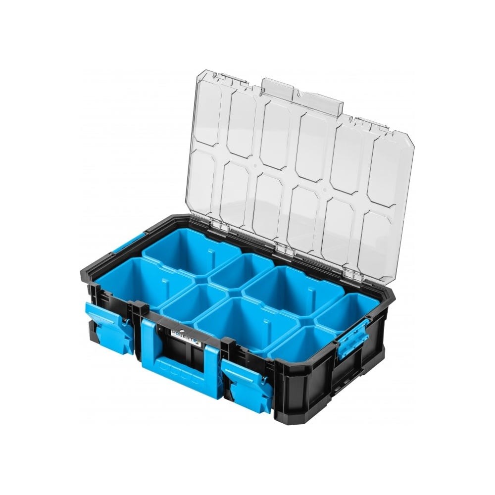 HOEGERT TECHNIK HT7G503: Органайзер с поликарбонатной крышкой – Профессиональная организация и надежная защита! Органайзер HOEGERT TECHNIK HT7G503 – это высококачественный ящик для инструментов, предназначенный для профессионального использования. Прочная конструкция и продуманная организация внутреннего пространства делают его идеальным решением для хранения и транспортировки инструментов и аксессуаров.Преимущества органайзера HOEGERT TECHNIK:Прочность и надежность: Создан для требовательных пользователей, обеспечивая высокую прочность и долговечность.Оптимальная организация: Оснащен 8 съемными отсеками, позволяющими оптимизировать пространство и удобно разместить небольшие инструменты, аксессуары и другие предметы.Надежная защита содержимого: Крышка из поликарбоната обеспечивает надежную защиту от ударов, пыли и влаги.Безопасность при транспортировке: Прочные фиксаторы из АБС-пластика обеспечивают надежное закрытие и предотвращают случайное открытие во время транспортировки.Высокая грузоподъемность: Максимальная нагрузка до 20 кг позволяет хранить даже тяжелые инструменты.Удобная переноска: Ручка в крышке обеспечивает удобную переноску органайзера.Совместимость с модульной системой: Совместим с другими элементами системы модульных ящиков, позволяя создать индивидуальную систему хранения.Органайзер HOEGERT TECHNIK HT7G503 – это профессиональная организация, надежная защита и удобство использования в одном изделии!
