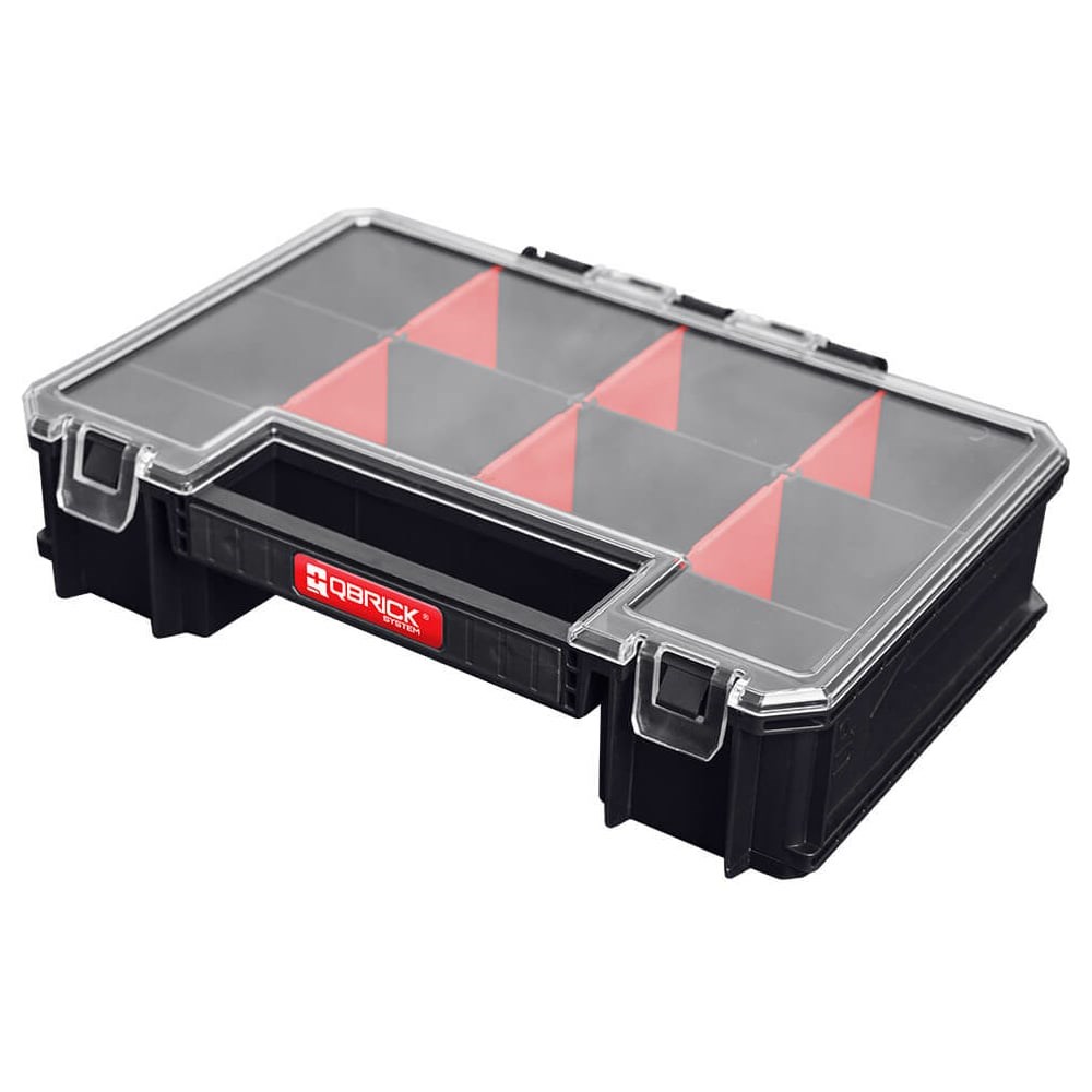 Органайзер QBRICK 2631-67 выполнен из прочного полимера и оснащен прозрачной крышкой. Это позволяет определить наличие или отсутствие каких-либо компонентов. Для транспортировки есть удобная рукоятка. Две защелки надежно удерживают крышку и исключают открытие органайзера.