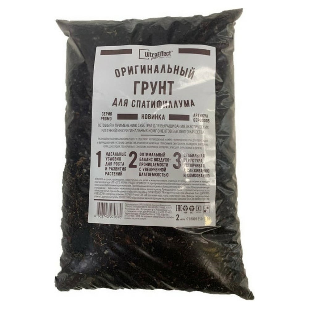 Оригинальный грунт для выращивания Спатифиллума EffectBio Ultra Effect+ 2 л 4603743270370 используется для пересадки и выращивания растений семейства ароидных. Содержит в себе все необходимые макро- и микроэлементы для здорового роста культур. Способствует активному развитию корневой системы и обеспечивает обильное, продолжительное цветение. В состав грунта входит мох сфагнум, он является природным антисептиком. Компоненты Субстрата предотвращают гниение корней и позволяют поддерживать оптимальный рН.