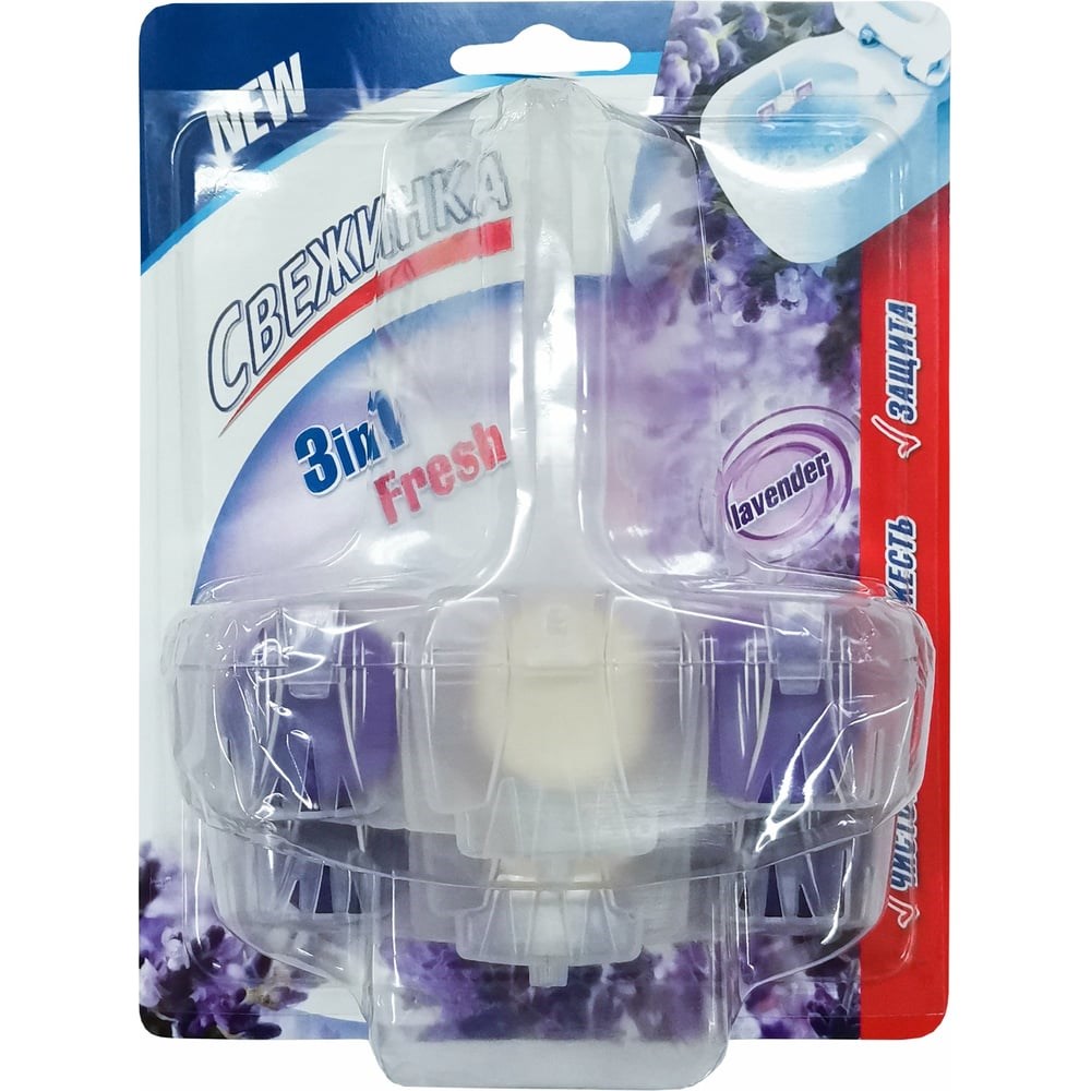 Освежитель Свежинка Блистер WC 3 in 1 Fresh Lavender 2*40 гр 00-00000593 - одновременно моющее и освежающее средство для унитаза длительного действия. Специально подобранные компоненты трех део-блоков обеспечивают гигиеническую чистоту и свежесть, устраняют загрязнения унитаза, уничтожают бактерии, предупреждают отложение осадков в труднодоступных местах, создают обильную пену и приятный запах при смывании.