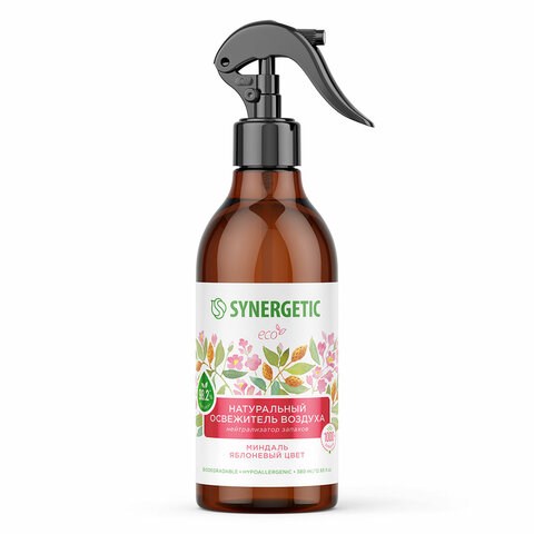 Освежитель воздуха 380 мл SYNERGETIC "Миндаль и яблоневый цвет", биоразлагаемый, нейтрализатор запахов, спрей, 900001
