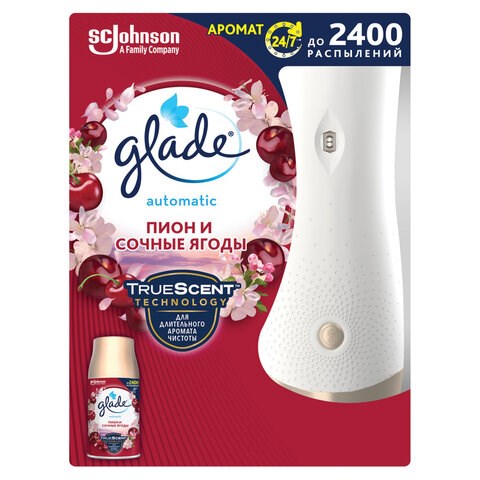 Освежитель воздуха автоматический, 269 мл, GLADE, диспенсер+сменный баллон, "Пион и сочные ягоды"