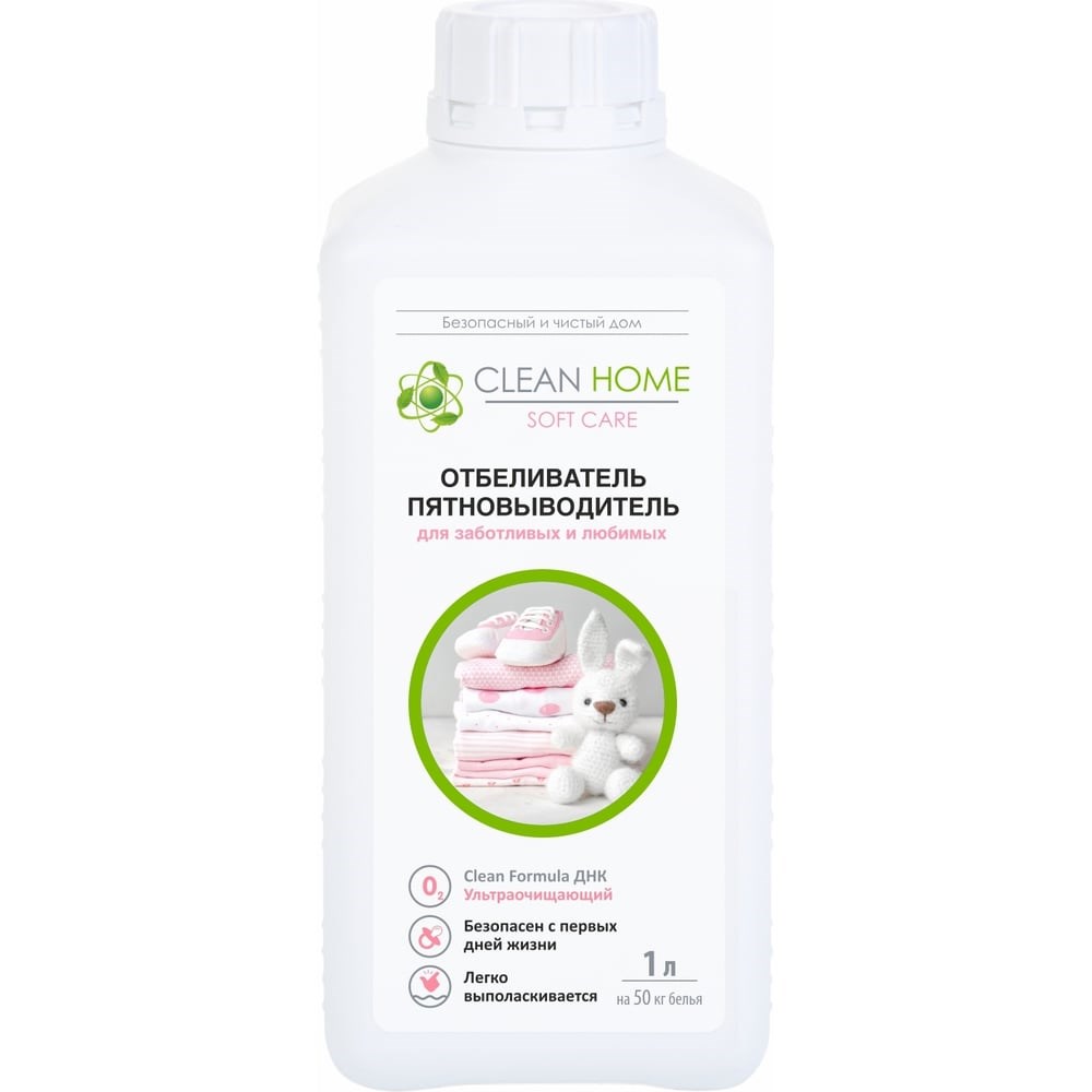 Отбеливатель для детской одежды CLEAN HOME 1 л 534 разработан специально для мягкого и безопасного ухода за бельем и одеждой. Не содержит агрессивных ПАВ, благодаря чему не повреждает обрабатываемые материалы. Полностью разлагаем, поэтому безопасен для окружающей среды. Отличается экономичным расходом, за счет чего средства хватит на долгий срок. Легко справляется с пятнами от фруктов, зелени, чая, крови, пятен от детского питания и биозагрязнений. Не раздражает чувствительную кожу и не вызывает аллергической реакции на моющее средство после использования. Способ применения: Для автоматической стирки: 100 мл отбеливателя на 4-5 кг сухого белья в присутствии средства для стирки. Для ручной стирки: 100 мл отбеливателя на 10 л воды в присутствии средства для стирки. Рекомендуется перед стиркой замачивать белье в растворе отбеливателя и средства для стирки на 15 мин.