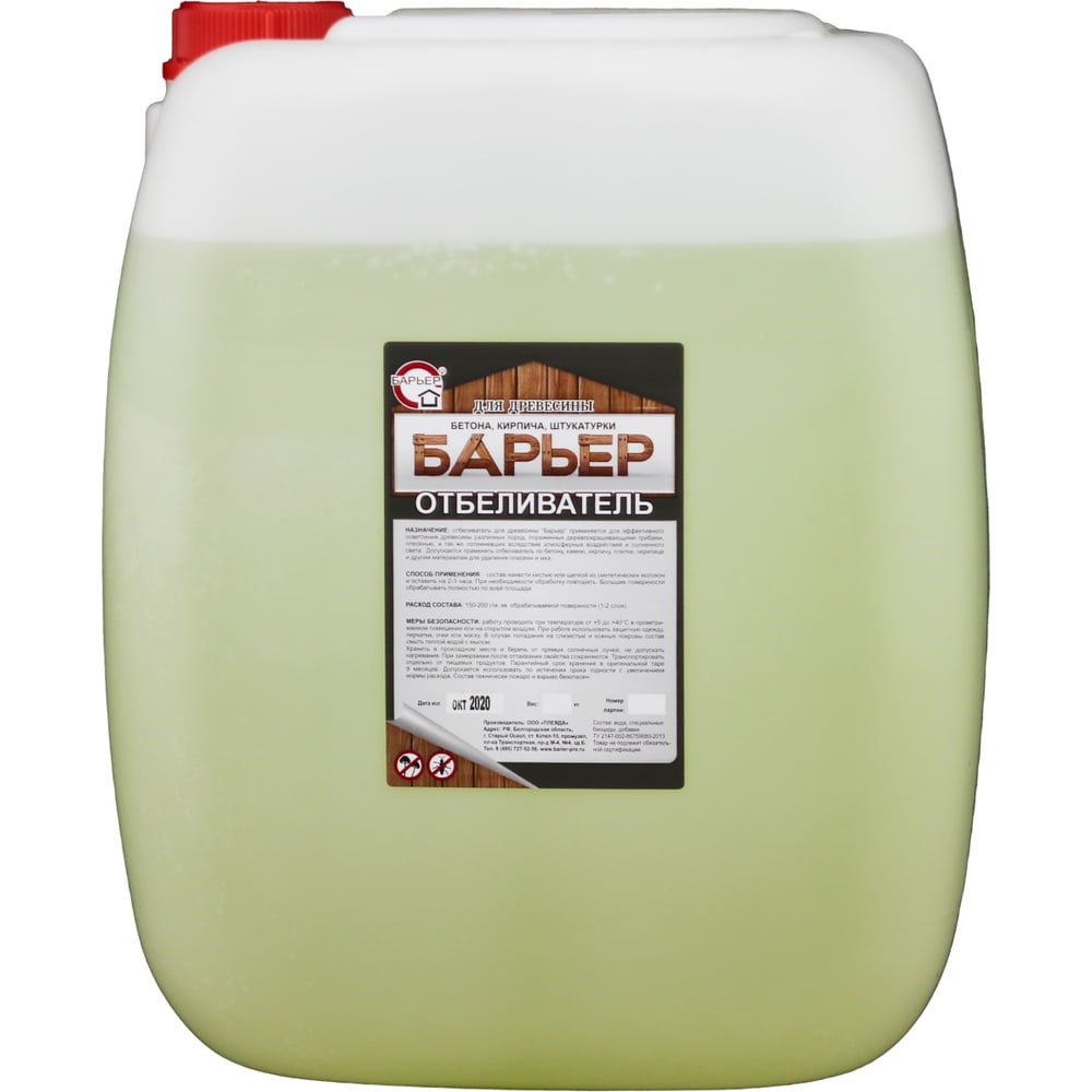 Отбеливатель для древесины БАРЬЕР канистра 35 кг 4665296515605 бережно осветляет потемневшие или пожелтевшие от воздействия неблагоприятных факторов поверхности, дезинфицирует и очищает от плесени, мха и водорослей. Средство подходит для различных материалов: древесины, бетона, кирпича, черепицы, камня, плитки, текстиля.
