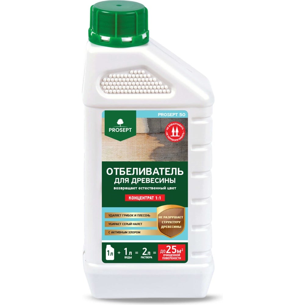Отбеливатель для древесины PROSEPT 50 концентрат 1:1 (получается 2 л готового раствора), 1 л 001-1 предназначен для удаления грибов, плесени, серого налета на глубине до 3 мм. Подходит для обработки тары и паллет, используемых в пищевой промышленности.Для обработки древесины необходимо развести препарат водой в соотношении 1:1. Для разведения рекомендуется использовать емкости из стали с резиновой футеровкой, полипропилена, полиэфира, стекла. В зависимости от интенсивности поражения и температуры окружающей среды можно использовать как 50% водный раствор препарата, так и концентрат.Обработку древесины производят нанесением препарата кистью или валиком с синтетическим ворсом.Обесцвечивание пигментной окраски происходит от 20 минут до нескольких часов, в зависимости от глубины поражения, природы древесины и температуры окружающей среды. В случаях, если глубина проникновения деревоокрашивающих грибов составляет более 3 мм либо температура воздуха ниже 10 градусов, может потребоваться двукратная обработка.В редких случаях после обработки препаратом, обычно при низких температурах, высохшая поверхность древесины может содержать незначительное количество кристаллической соли, которую легко удалить влажной тряпкой.Отбеливание следует проводить в проветриваемых помещениях или на открытом воздухе при температуре не ниже +5°С.Расход рабочего раствора: 150 - 200 г/м²