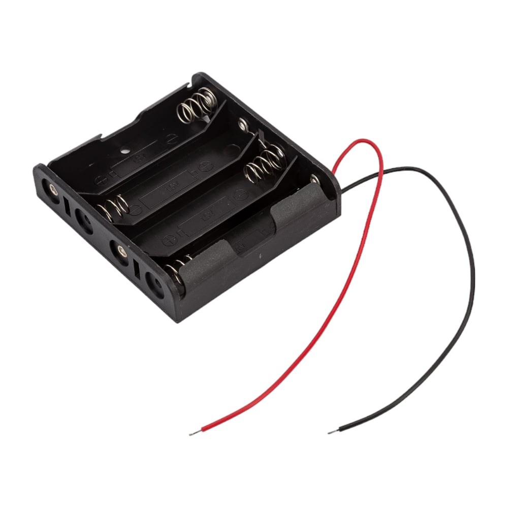 Батарейный отсек ROBITON BH4xAA с проводом - пластиковый контейнер, предназначенный для установки элементов питания в корпусы электроприборов. Подходит для последовательного соединения четырех элементов питания размера АА/HR06. Снабжен контактными выводами. Упаковка: пакет