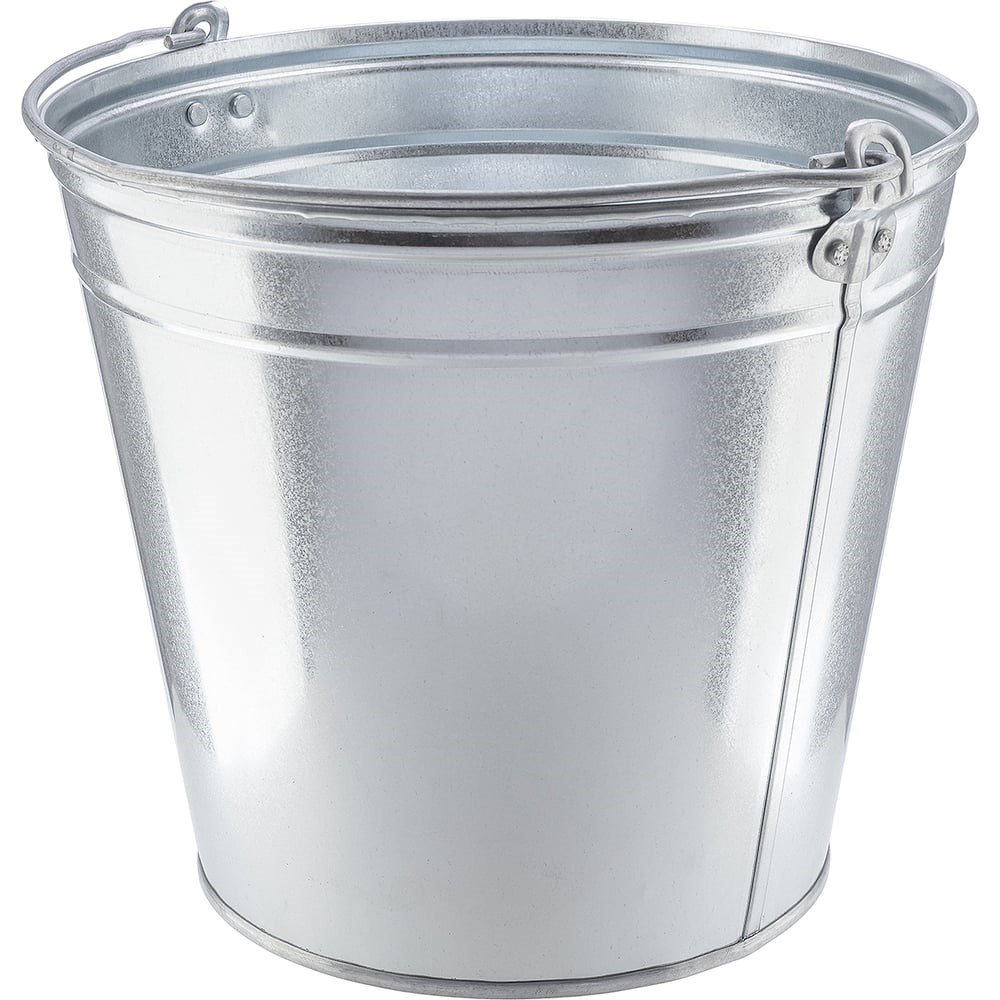 Цинковое покрытие на изделии светлое, что придает ведру привлекательный вид. Ведра изготовлены из оцинкованной стали, имеют один шов. Герметизация швов изделий проводится путем нанесения уплотнительной пасты перед сшивкой. Для крепления арматуры применяются стальные заклепки, что позволяет перенос тяжелых грузов. Ручки посуды имеют удобную форму.