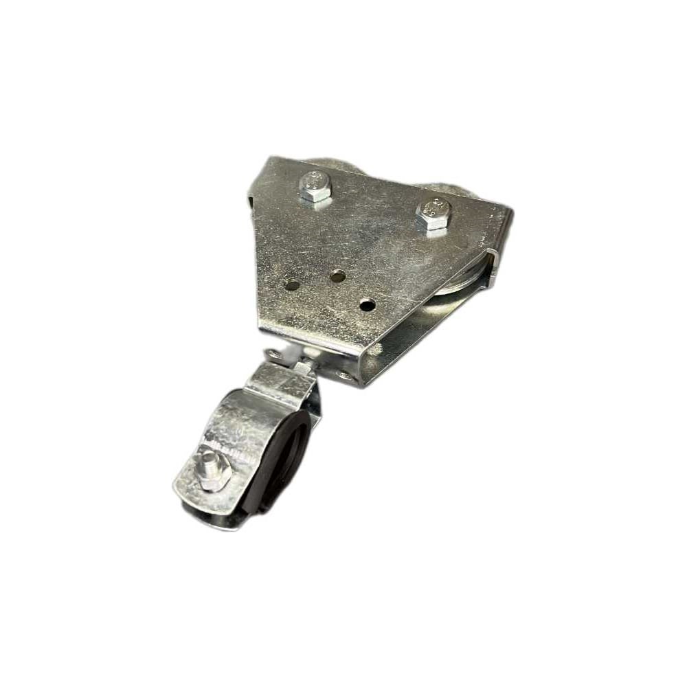 Подвес для кабеля ПК2-50-8.Предназначен для перемещения кабеля сечением до 25 мм по тросу или струне диаметром от 4 до 8 мм.2 ролика с подшипниками диаметром 50 мм.Канавка под тросик до 8 мм.