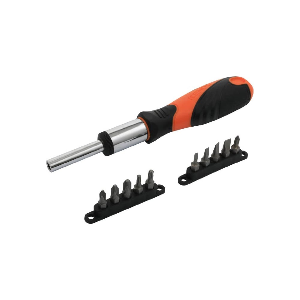 Отвертка с набором бит KENDO 11 шт 20203 используется для работ с резьбовыми соединениями. Инструмент выполнен из качественной стали. Материал обладает прочностью и долговечностью. Эргономичная рукоятка с покрытием из термопластичной резины обеспечивает комфортную эксплуатацию.