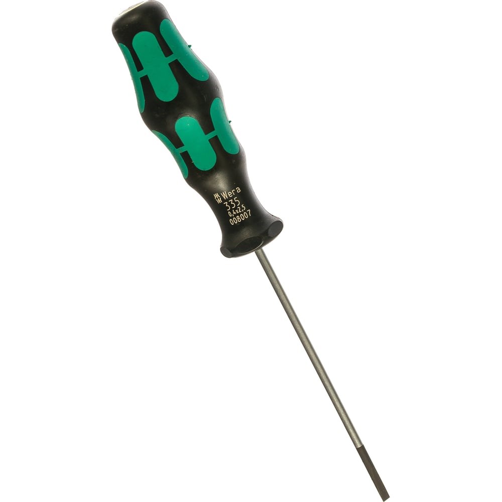 Отвёртка 335 0,4 х 2,5 х 75 мм Wera WE-008007 - это усовершенствованная шлицевая отвёртка. Она имеет небольшой вес и малые габариты, поэтому удобна в хранении.