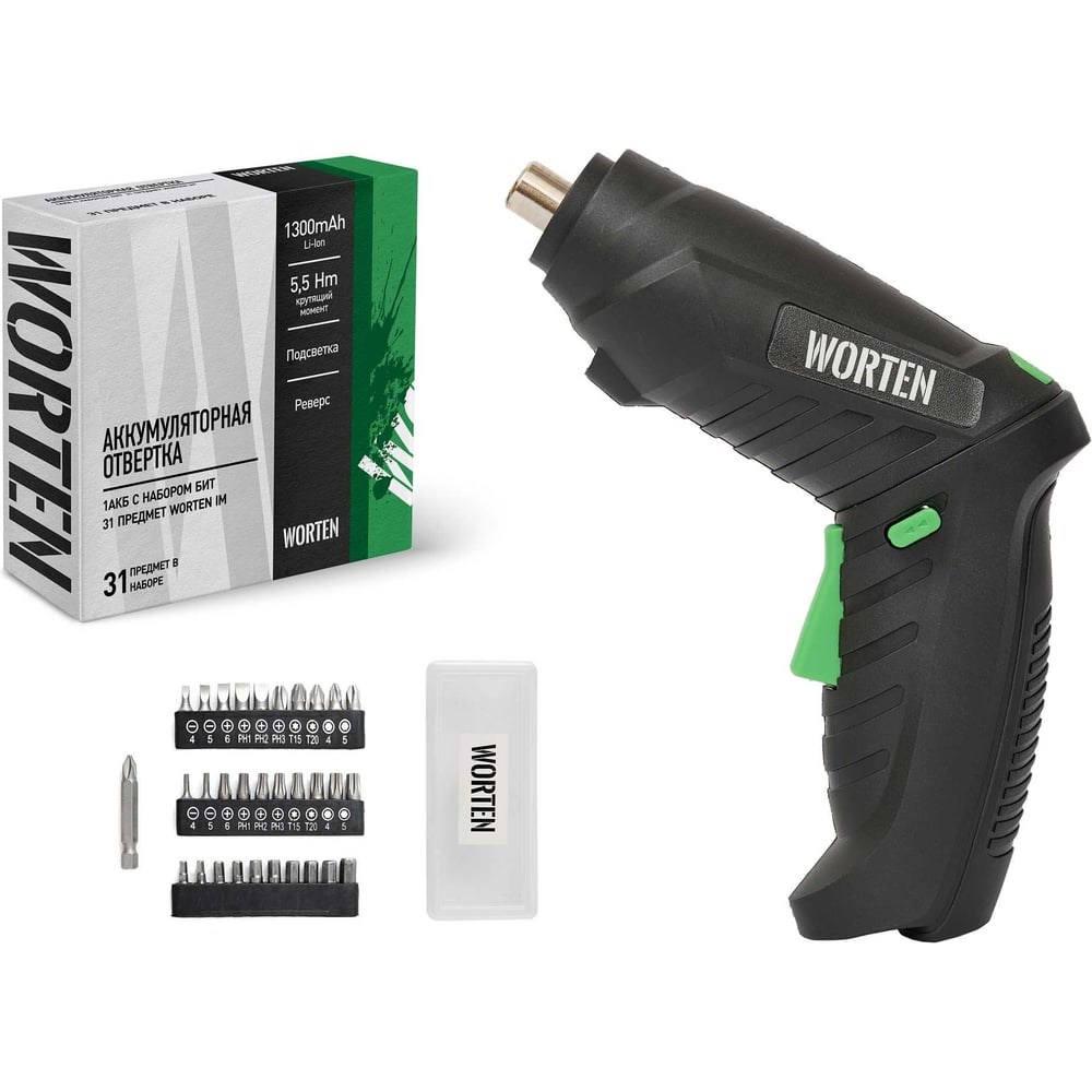 Аккумуляторная отвертка WORTEN 1АКБ, с набором бит 31 предмет— это компактный и мощный инструмент для выполнения широкого спектра задач. Она оснащена встроенным аккумулятором Li-lon на 4 В и ёмкостью 1,3 А*ч, что обеспечивает автономность и удобство в использовании. Её угловая форма корпуса и вес всего 0,6 кг делают её идеальной для работы в труднодоступных местах. Набор отверток с насадками идеальное решение для различных видов работ, включая работу с крепежными элементами даже в самых труднодоступных местах.Компактная и эргономичная, отвертка обеспечивает удобство и точность в каждом движении.В комплекте с электрической отверткой поставляется 31 насадку, что позволяет выполнять широкий спектр задач: от закручивания корпусных винтов до работы с различными шурупами и саморезами. Этот набор отверток делает инструмент универсальным помощником для выполнения мелких и крупных ремонтов, а также монтажа оборудования. Благодаря функции реверса, вы сможете легко изменять направление вращения, что упрощает процесс закручивания и откручивания винтов. До 30.06.2026 на данный товар действует условие безусловного возврата.