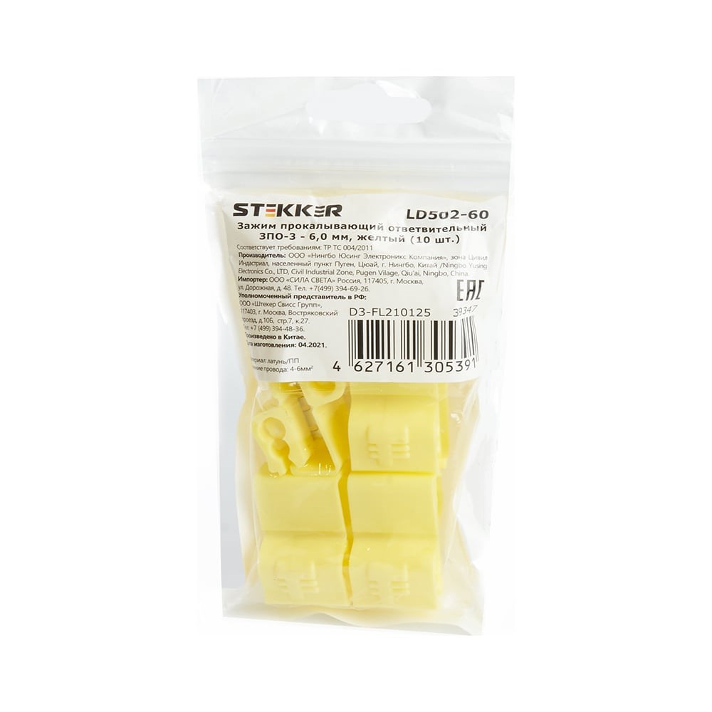 Прокалывающий ответвительный зажим STEKKER LD502-60 ЗПО-3 - 6,0 мм, желтый упаковка 10 шт 39347