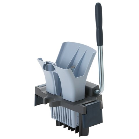 Позволяет быстро и эргономично убирать помещения с высокой производительностью., Инновационный дизайн отжима позволяет выжимать насадки с меньшими усилиями и без необходимости сильно наклоняться к ведру., Легко и прочно крепится на ведро Vileda Professional (не входит в комплект)., Встроенные фиксаторы швабры позволяют эргономично закрепить ручку с держателем в ведре., Увеличенная спинка позволяет легко вставлять насадку в отжим., Позволяет механически регулировать уровень увлажненности насадок., Прочная и надежная конструкция., Удобная фиксация и снятие отжима для очистки после уборки.