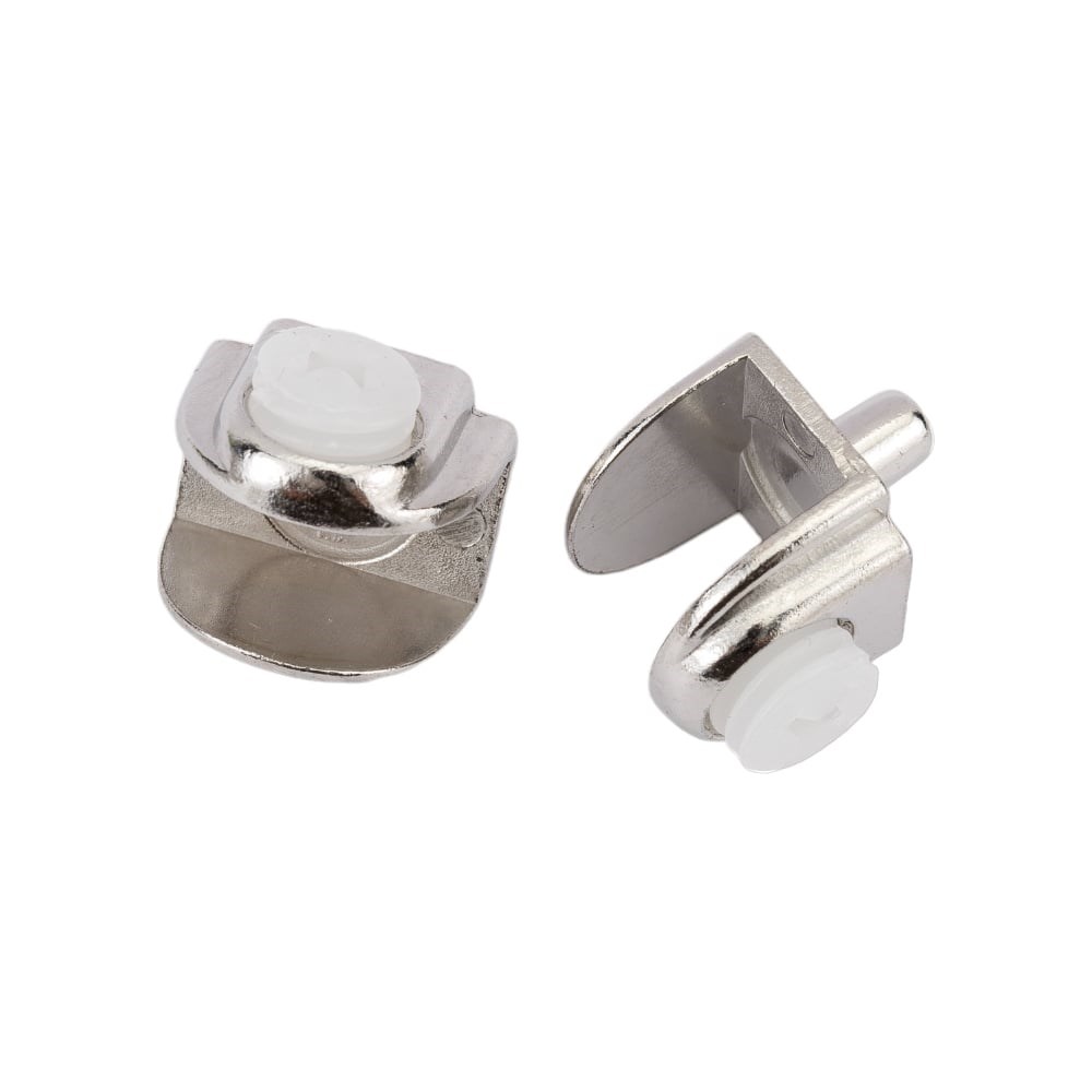 Область применения: установка стеклянных полок.Применяется в мебельном производстве для сборки корпусной мебели.Материал: углеродистая сталь с никелевым покрытием.Особенности: имеет большую площадь опоры и обеспечивает надежную фиксацию стеклянных полок. Стальной штифт держателя устанавливается в предварительно просверленное отверстие. Сила зажима изменяется с помощью пластикового регулировочного винта, расположенного в нижней части. Благодаря никелевому покрытию стеклодержатель имеет эстетичный внешний вид.В состав комплекта входят: - стеклодержатель П-образный (2 шт.).В связи со сменой бренда, возможен временный микс упаковок!