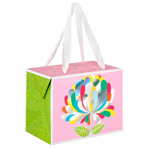 Пакет-коробка подарочный (1 штука) ассорти "Happy Birthday"/"Цветок", глиттер/тиснение фольгой, ламинация 15х9х11 см, 81273, 90074, 81273