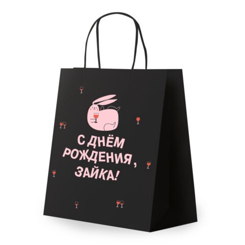 Пакет подарочный (1 штука) 26х13х32 см (L) "С днем рождения, зайка!", крафт, ЗОЛОТАЯ СКАЗКА, 700840