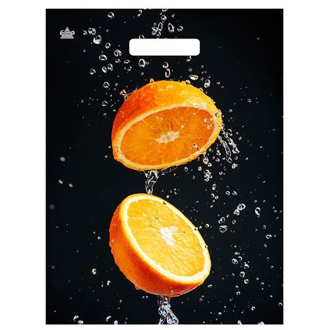 Пакет с вырубной ручкой ПВД ламинированный, 40х31 см, "Апельсиновый взрыв", 60 мкм, н00269308