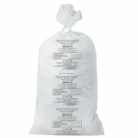 Пакеты для медицинских отходов КОМПЛЕКТ 100 шт., класс А (белые) 30 л, 50х60 см, 16 мкм, ПТП "Киль"