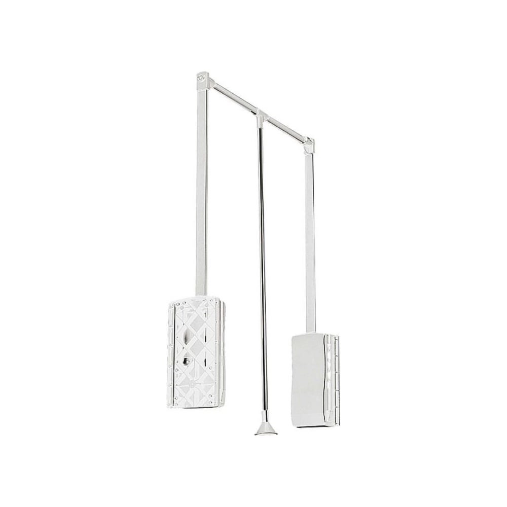 Пантограф 60/83 стальной, белый, в модуль 645-910 мм - гардеробный механизм, посредством которого опускается штанга с одежными вешалками в шкафу. Вы открываете (отодвигаете) дверь шкафа, тянете за ручку механизма, перекладина с вешалками смещается вниз, и вы берете нужный предмет одежды.Пантограф имеет фиксацию в верхнем и в нижнем положениях.Важная особенность механизма: штангу легче опускать, когда она нагружена вешалками с одеждой. Без нагрузки опускать штангу тяжелее.Механизм выдерживает нагрузку не более 8 кг.Телескопическая штанга перед установкой в шкаф регулируется в пределах 60-83 см.