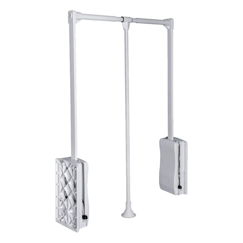 Пантограф 60/83 стальной, полностью белый, в модуль 645-910 мм - гардеробный механизм, посредством которого опускается штанга с одежными вешалками в шкафу. Вы открываете (отодвигаете) дверь шкафа, тянете за ручку механизма, перекладина с вешалками смещается вниз, и вы берете нужный предмет одежды.Пантограф имеет фиксацию в верхнем и в нижнем положениях.Важная особенность механизма: штангу легче опускать, когда она нагружена вешалками с одеждой. Без нагрузки опускать штангу тяжелее.Механизм выдерживает нагрузку не более 8 кг.Телескопическая штанга перед установкой в шкаф регулируется в пределах 60-83 см.