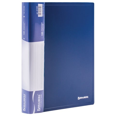 Папка 100 вкладышей BRAUBERG стандарт, синяя, 0,9 мм, 221609