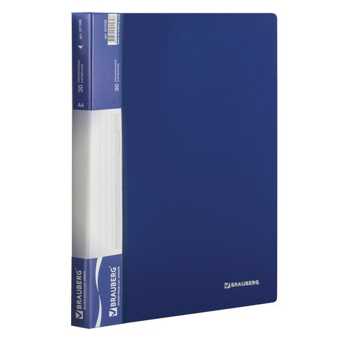 Папка 30 вкладышей BRAUBERG стандарт, синяя, 0,6 мм, 221599