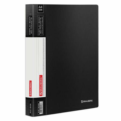 Папка 60 вкладышей BRAUBERG стандарт, черная, 0,8 мм, 221606