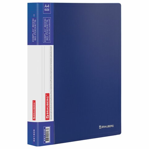 Папка 60 вкладышей BRAUBERG стандарт, синяя, 0,8 мм, 221605