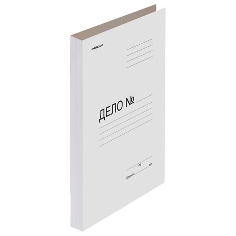 Папка стандартного формата А4 вмещает до 200 листов. Изготовлена из немелованного картона плотностью 280 г/м2. Отсутствие скоросшивателя позволяет не портить документацию дыроколом и при этом сохранить ее от деформации. Имеет надпись "Дело №" на обложке. Упакована в крафт-бумагу.
