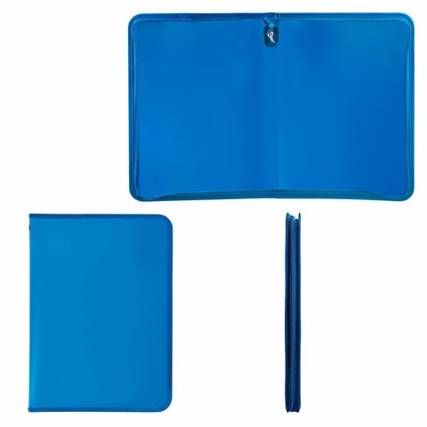 Папка для документов и тетрадей на молнии пластиковая BRAUBERG А4, 320х230 мм, синяя, 271715