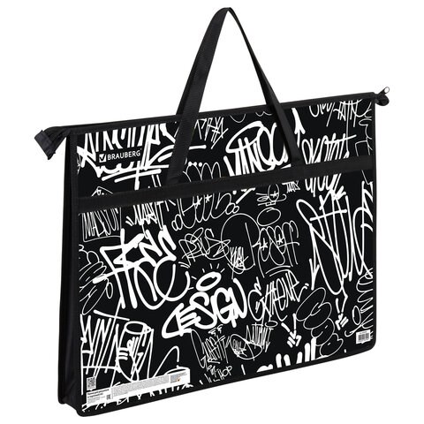 Папка для рисунков и чертежей с ручками BRAUBERG А3, пластик, молния сверху, "Graffiti", 272233