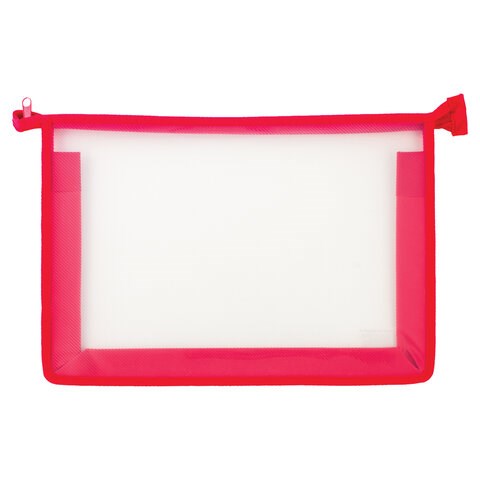 Папка для тетрадей А4 ПИФАГОР, пластик, молния сверху, прозрачная, красный, 272108