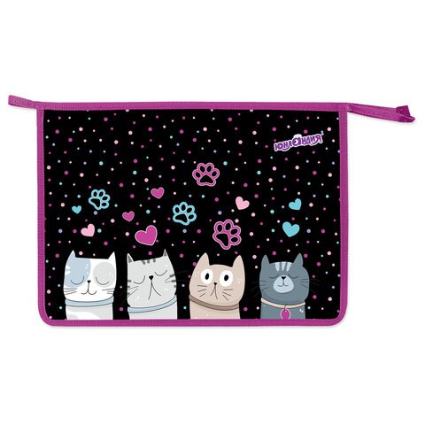 Папка для тетрадей ЮНЛАНДИЯ А4, 1 отделение, пластик, на молнии, "Cat squad", 273347