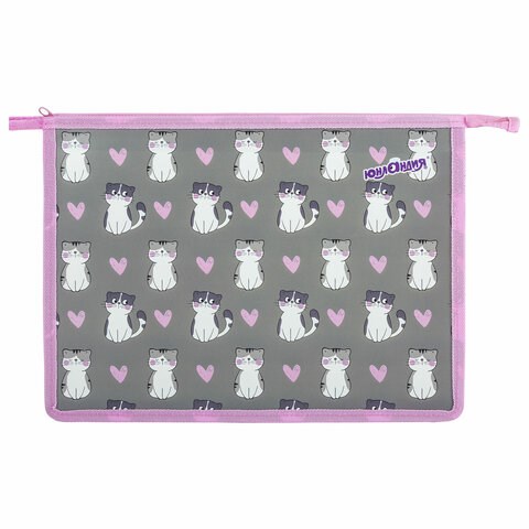 Папка для тетрадей ЮНЛАНДИЯ А4, 1 отделение, пластик, на молнии, "Sweet whiskers", 272137