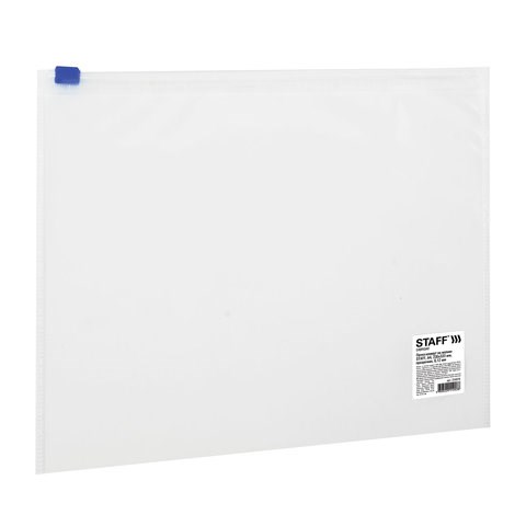 Папка-конверт на молнии А4 (230х333 мм), прозрачная, 0,12 мм, STAFF, 224979