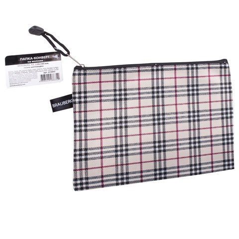Папка-конверт на молнии МАЛОГО ФОРМАТА (238х180 мм), А5, ткань в клетку, BRAUBERG "Checked", 223893
