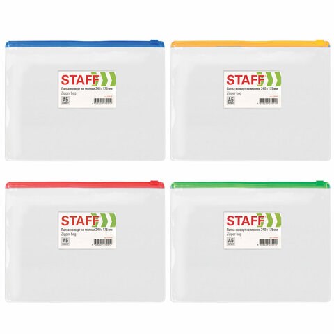 Папка-конверт на молнии МАЛОГО ФОРМАТА (240х175 мм), А5, карман для визиток, прозрачная, 0,12 мм, STAFF, 229548