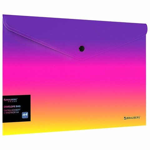 Папка-конверт с кнопкой BRAUBERG "Grade", А4, до 100 листов, желто-розовый градиент, 0,18 мм, 271964