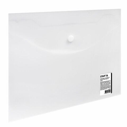 Папка-конверт с кнопкой МАЛОГО ФОРМАТА (240х190 мм), А5, матовая, прозрачная, 0,15 мм, STAFF, 270463