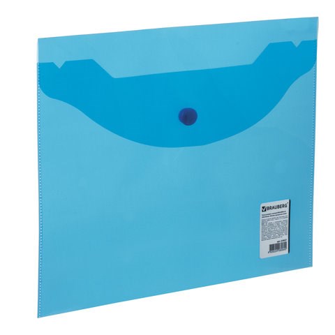 Папка-конверт с кнопкой МАЛОГО ФОРМАТА (240х190 мм), А5, прозрачная, синяя, 0,18 мм, BRAUBERG, 224027